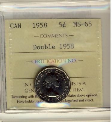 1958 5¢ Double Date ICCS MS65.