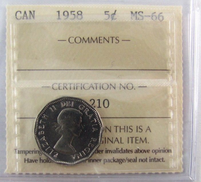 1958 5¢ ICCS MS66.