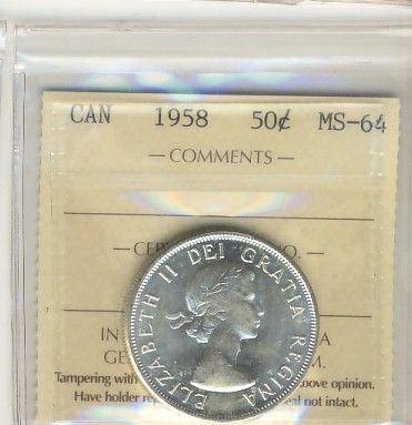 1958 50¢ ICCS MS64.