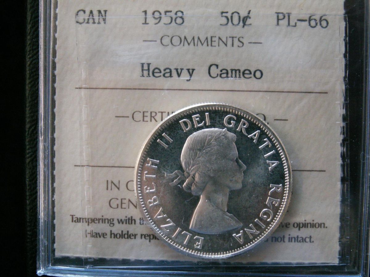 1958 50¢ ICCS PL66 Heavy Cameo. Tied for finest graded.