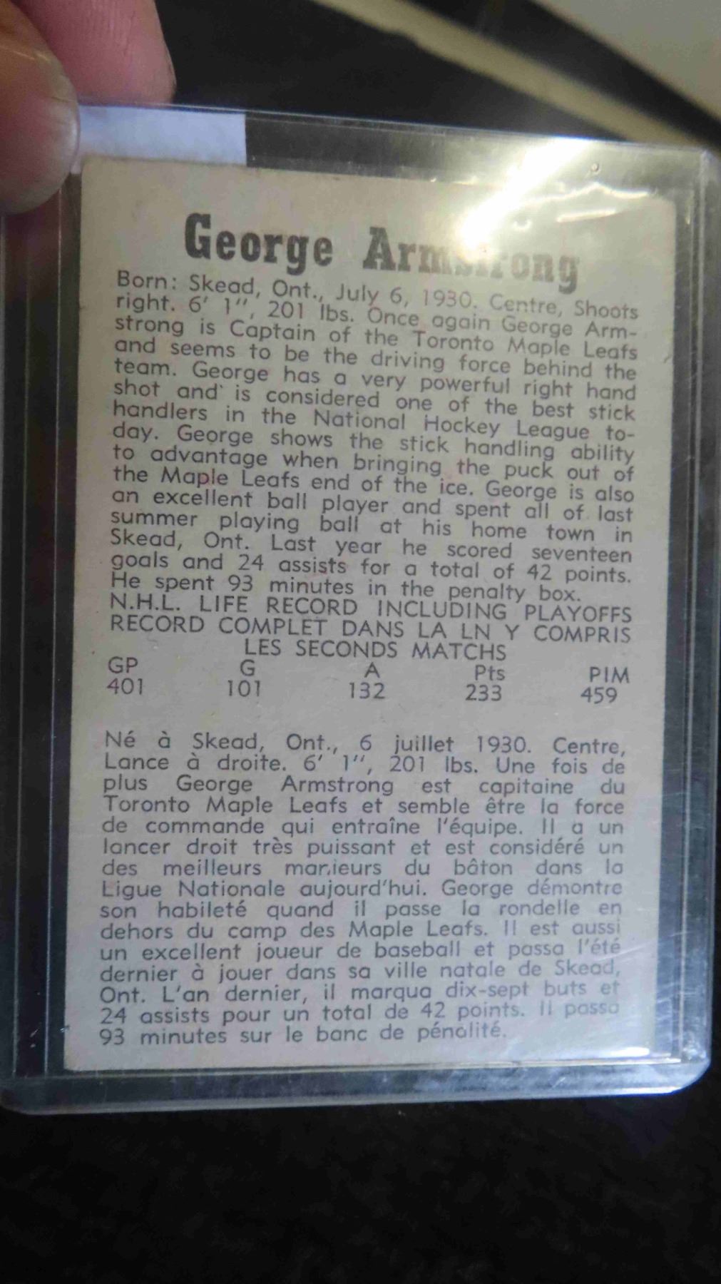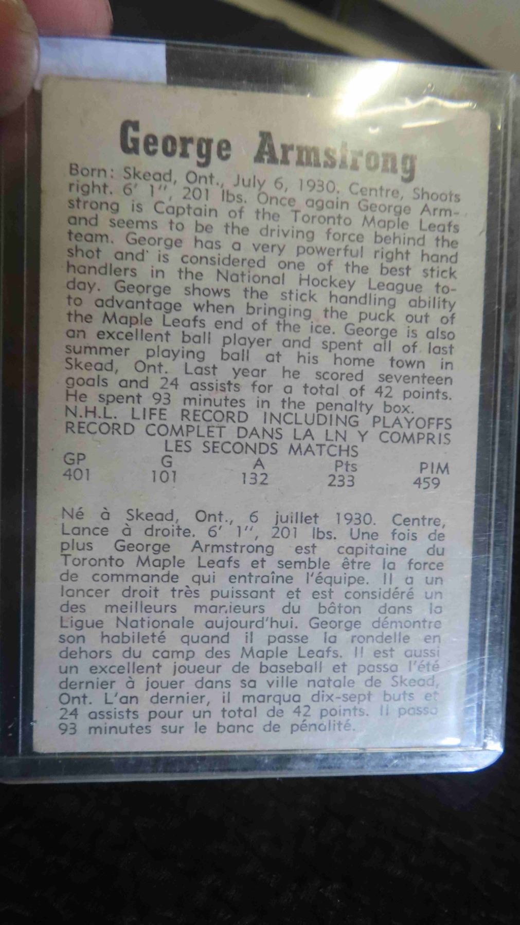 1958/59 Parkhurst George Armstrong Maple Leafs -Rare
