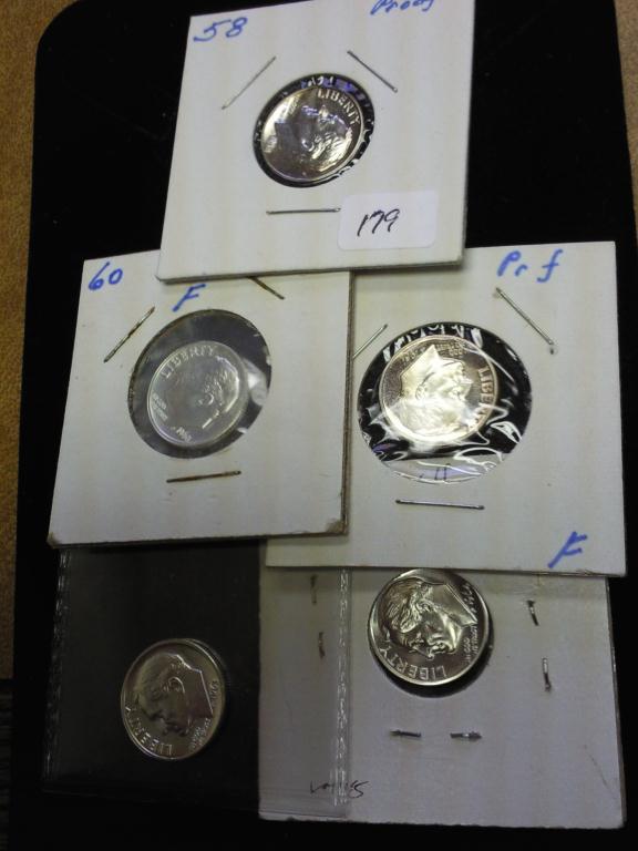 1958, 60, 61, 63 & 64 ROOSEVELT DIMES PROOF