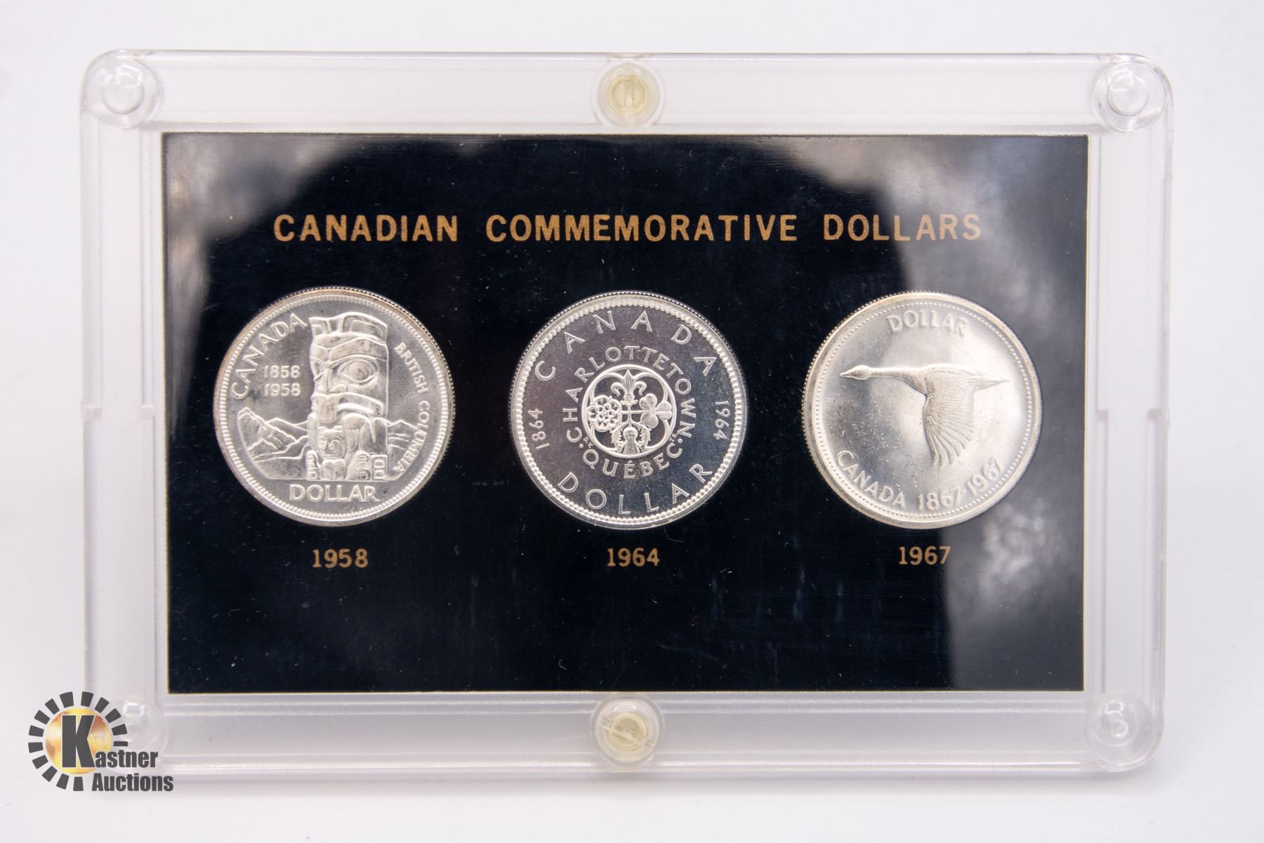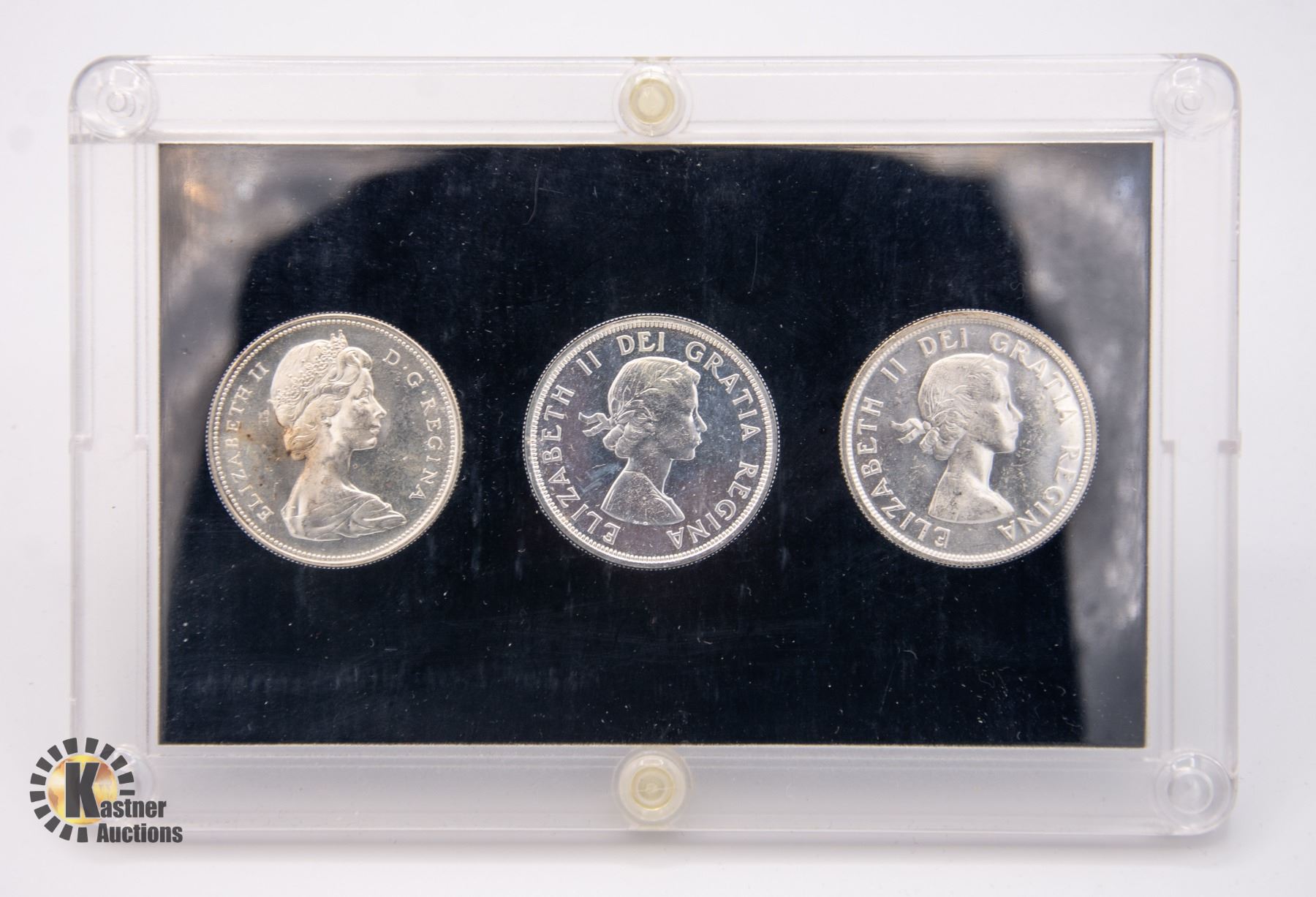 1958,64,67 SET OF 3 SILVER CANADA COMMEM. $1 COINS