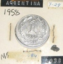 1958 ARGENTINA 1 PESO *RARE MS HIGH GRADE*!! COIN CAME OUT OF SAFE!! ***Coin, Currency & All Items Listed in this auction - Grades, Conditions and Values are not Safe Deposit Coins LLC Responsibilty. Grades, Condition and Values are determined by Consigner(s) & Buyers ONLY***