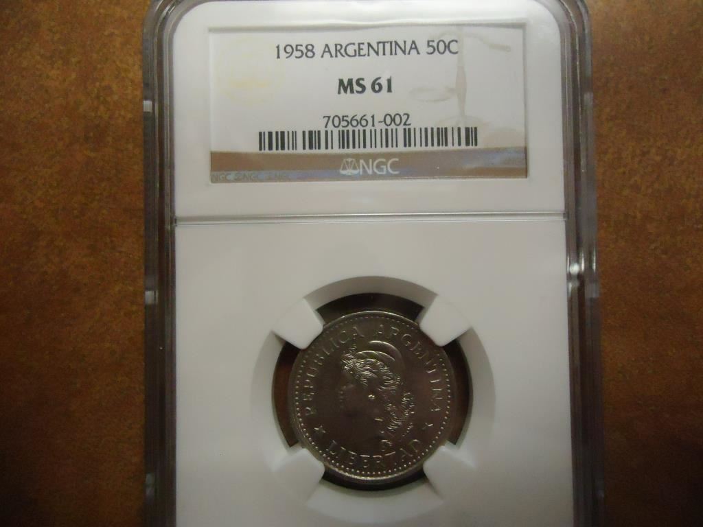 1958 ARGENTINA 50 CENTAVOS NGC MS61