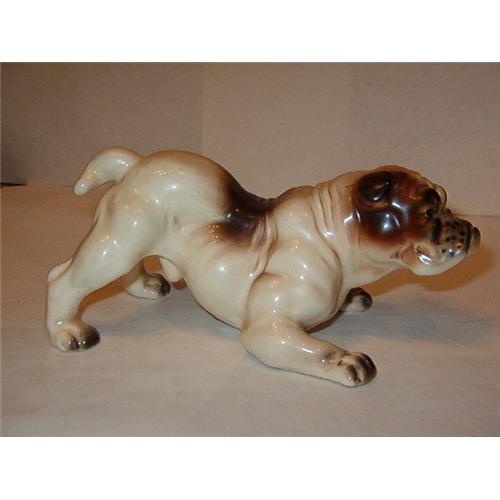 THIS IS A BULL DOG FIGURINE MADE IN JAPAN IN THE LATE 1950'S BY THE UCAGCO COMPANY. THE DETAIL ON THESE DOGS MAKE THEM LOOK REAL. THIS DOG WAS ADDED TO MY COLLECTION ON JUNE 7, 1958 . ALL THE DOGS THAT I PUT ON HERE ARE FROM MY OWN DOG COLLECTION. I HAVE OVER 300 DOGS THAT I RECEIVED FOR MY COLLECTION FROM 1954 TO 1964 THAT WILL BE PUT UP FOR SELL. I HAVE THE EXACT DATE THAT I RECEIVED THE DOG BUT SOME OF THE DOGS WERE OLD WHEN I RECEIVED THEM. I NOW HAVE OVER 1200 DOGS (OLD and NEW) IN MY COLLECTION AND THEY ARE ALL FOR SELL. This Dog is in excellent condition for its age. There are no chips, cracks or repairs on this Dog. There is age crazing on the Dog. It is mostly on the underside of the Dog. You can see most of this in my pictures. I HAVE OVER 800 POSITIVE FEED BACKS FOR MY EBAY STORE. Thanks for Looking !!!