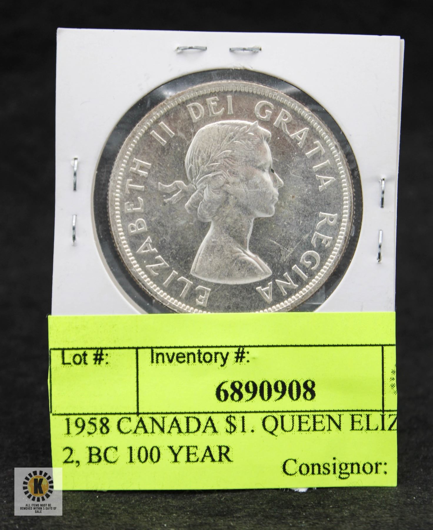 1958 CANADA $1. QUEEN ELIZABETH 2, BC 100 YEAR
