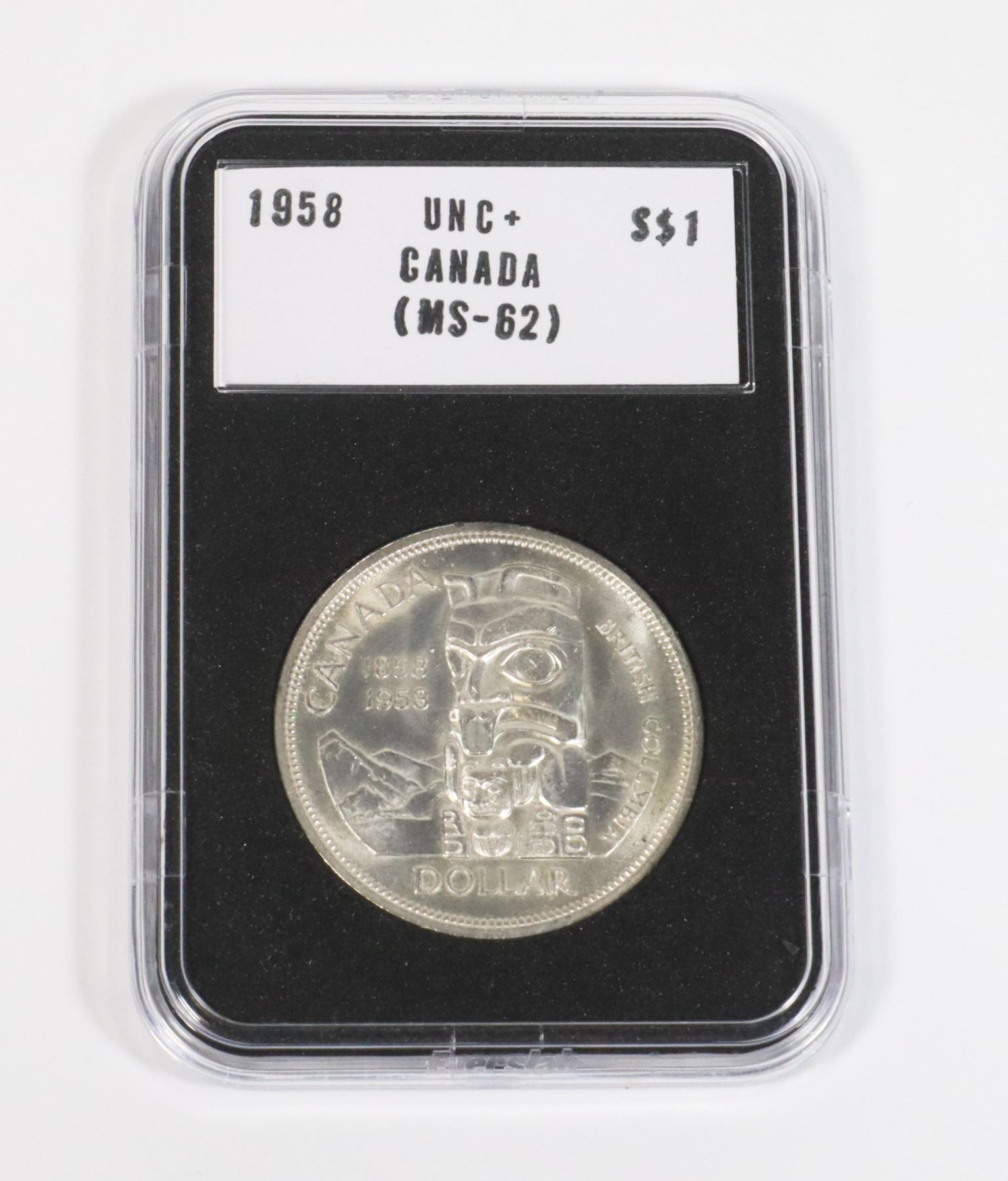 1958 CANADA SILVER DOLLAR,COMES IN RECTANGULAR