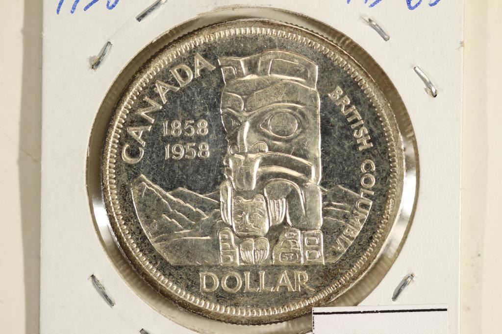 1958 CANADA TOTEM SILVER DOLLAR BU