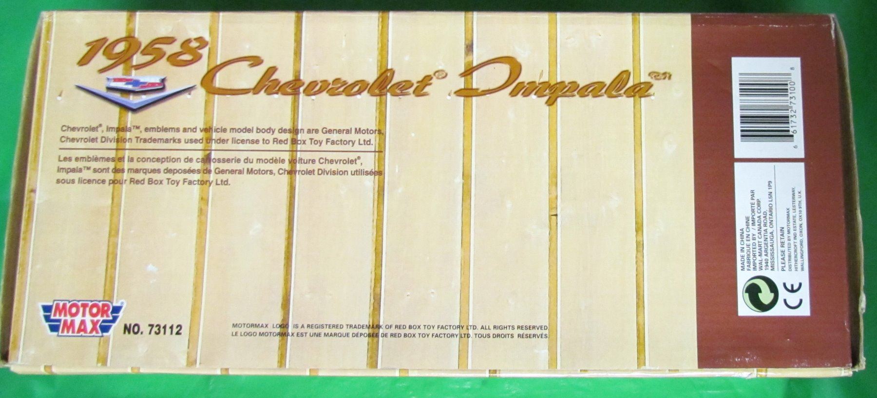 1958 CHEV IMPALA DIE CAST MODEL (1:18 SCALE) *MOTOR MAX-RED BOX TOY FACTORY* (NOS)