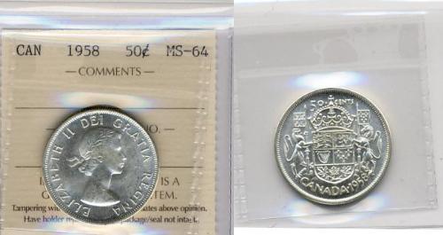 1958 Canada Fifty Cents-ICCS MS64