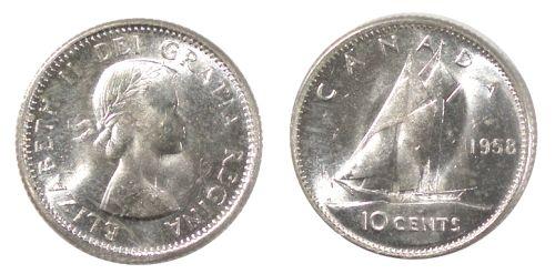 0194 - 1958 Canada Ten Cents-ICCS MS65