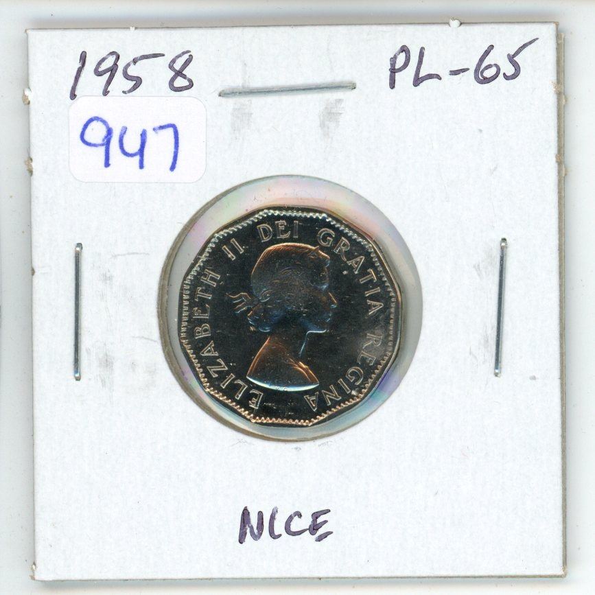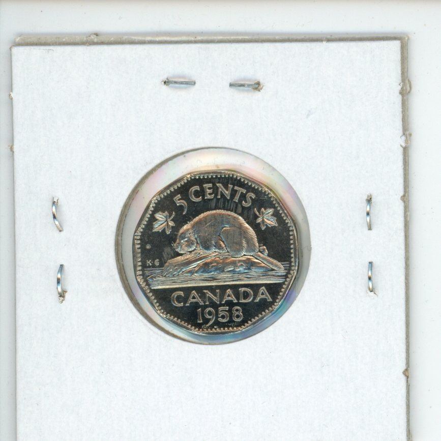 1958 Canadian 5 Cents. From a Proof Like Set. Nice.