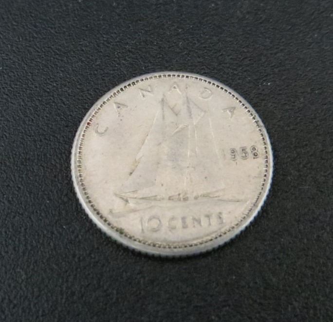 1958 Canadian Silver 10 Cent Coin