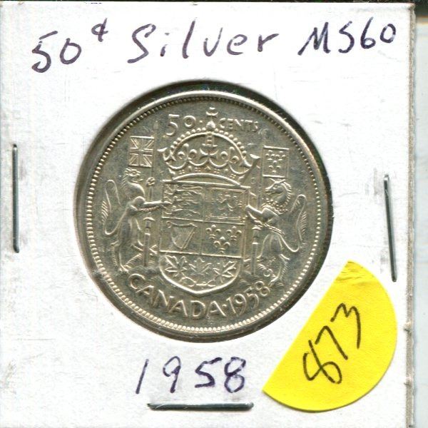 1958 Canadian Silver .50C Coin - Queen Elizabeth