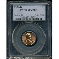 <B>1958-D 1C MS67 Red PCGS.</B></I> A suitably struck and lustrous yellow-gold Superb Gem, essentially devoid of contact. The final Denver Mint issue of the Wheat Ears design. Lot:5575