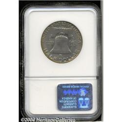 <B>1958-D<50C> MS67 NGC.</B></I> A beautiful Franklin Half Dollar for the toning fan. The obverse displays variegated campfire-red, gold, and apple-green toning while the reverse is primarily dove-gray with golden peripheral accents. A colorful Gem that is inhibited only by incompleteness on the lowest pair of bell lines. <BR><BR><B>Important notice:</B> Heritage usually auctions material at the rate of 200-250 lots per hour. On some occasions eBay Live bid software or the Internet may not be able to keep up with the pace of the auction. We recommend placing a realistic absentee bid now as insurance to avoid disappointment. Occasionally the auctioneer may eliminate or reject an eBay Live bid, and the auctioneer may also reopen a lot after the close of the eBay live bidding (usually because we missed an audience bid), and may reject your bid even if it shows you as the winning bidder. By bidding via eBay Live, you agree that Heritage may award the lot to another bidder at its sole discretion under the circumstances described above or any other reasonable circumstances. Since eBay bids are not shown to us until we open the lot on the floor, we treat those bids just like floor bids. In most cases the floor responds before the eBay bid is presented to us, due to Internet lag time, so for consistency we have made it a policy that floor bids are always considered first over tie eBay live bids. Also please note that all Heritage lots purchased through eBay Live carry a 20% Buyer's Premium. Please make sure you read the Terms and Conditions before you bid. </span></font></tr></table></td></tr></table>