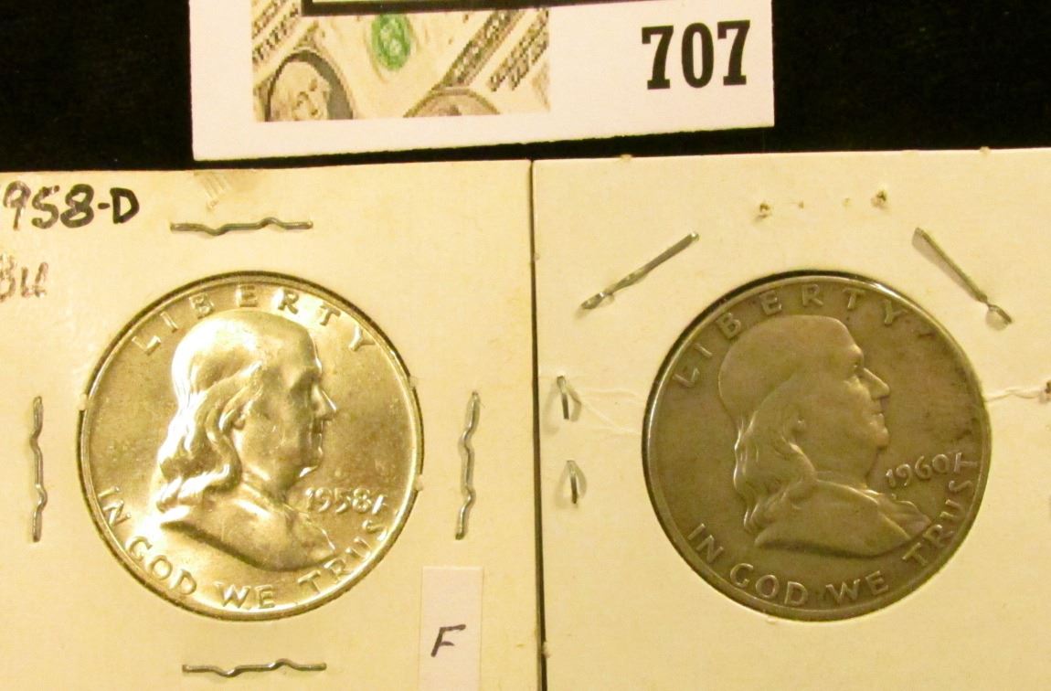 1958 D BU & 60 D Fine Benjamin Franklin Half Dollars.