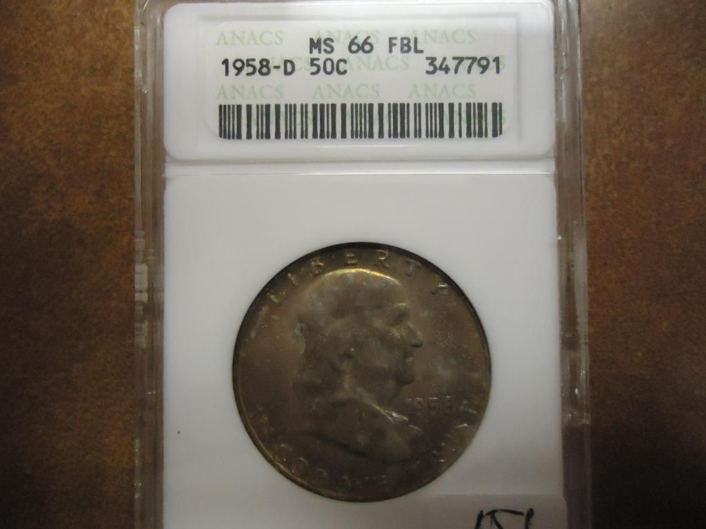 1958-D FRANKLIN HALF DOLLAR ANACS MS66FBL TONED