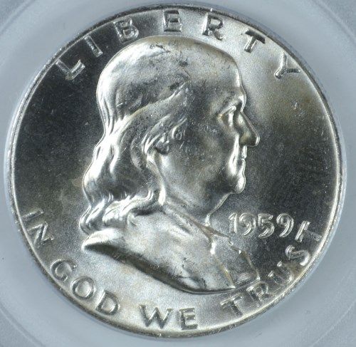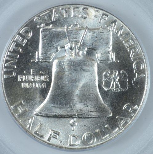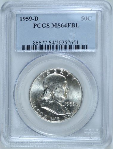 1958-D FRANKLIN HALF DOLLAR, PCGS MS-64 FBL