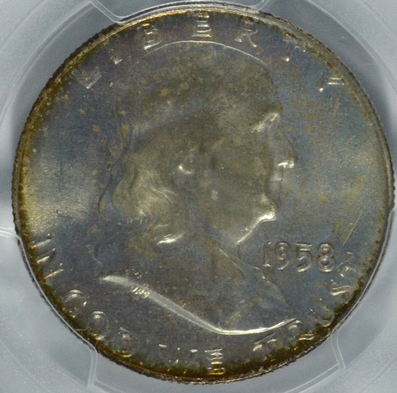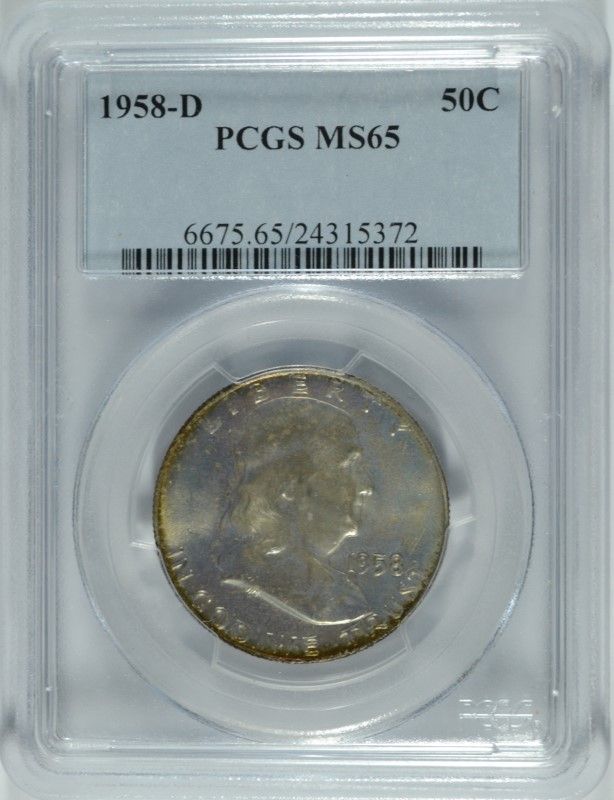 1958-D FRANKLIN HALF DOLLAR, PCGS MS-65   TONING