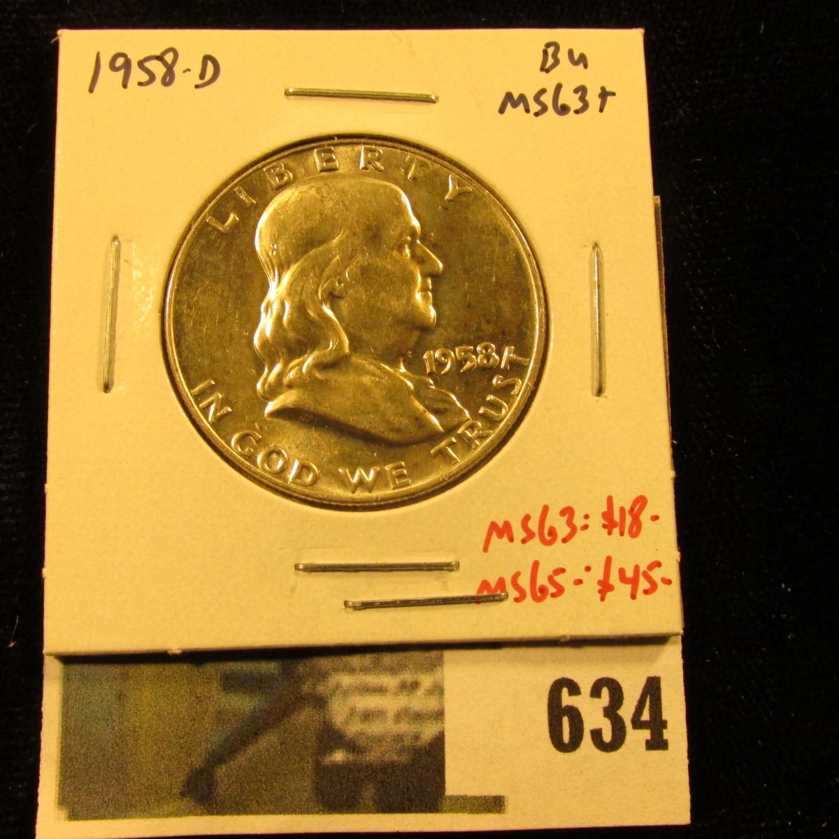 1958-D Franklin Half Dollar, BU MS63+, MS63 value $18, MS65 value $45, value $18 to $45