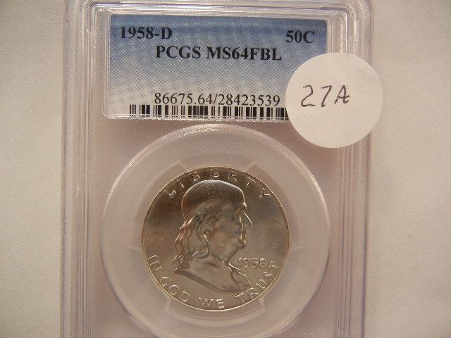 1958-D Franklin Half Dollar, Graded by PCGS MS64 FBL