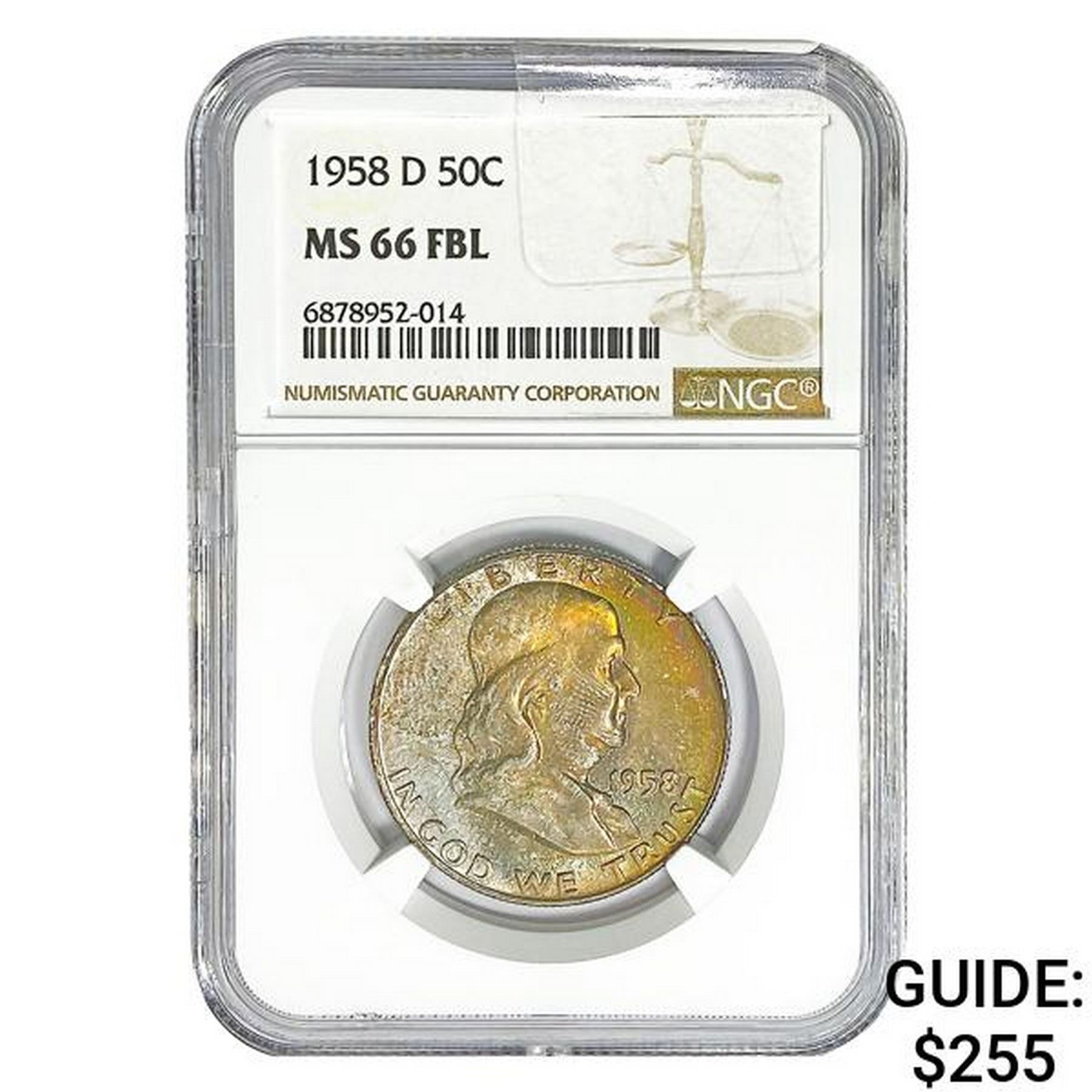 1958-D Franklin Half Dollar NGC MS66 FBL