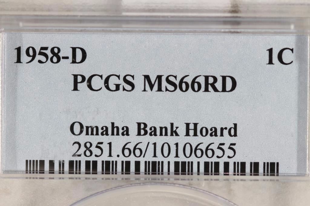 1958-D LINCOLN CENT PCGS MS66RD OMAHA BANK HOARD