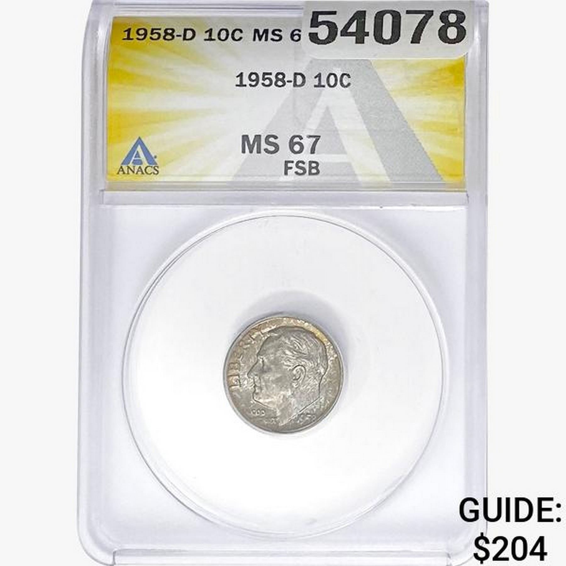 1958-D Roosevelt Dime ANACS MS67 FSB