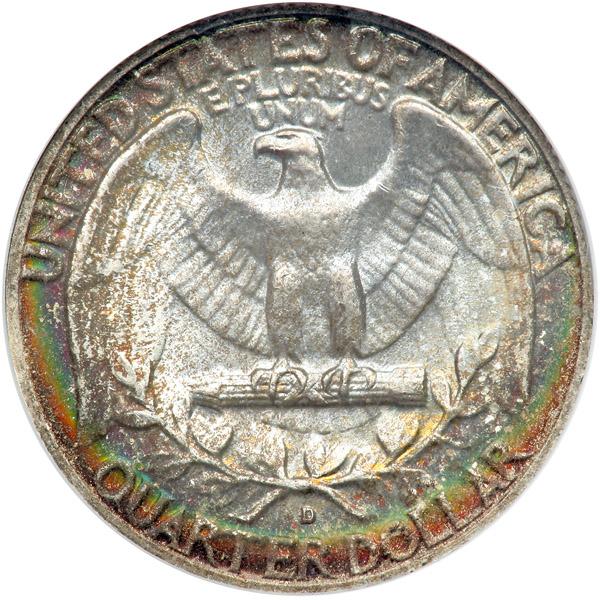 1958-D Washington Quarter Dollar. NGC graded MS-66. Deeply toned. Probably taken from an original mint set.