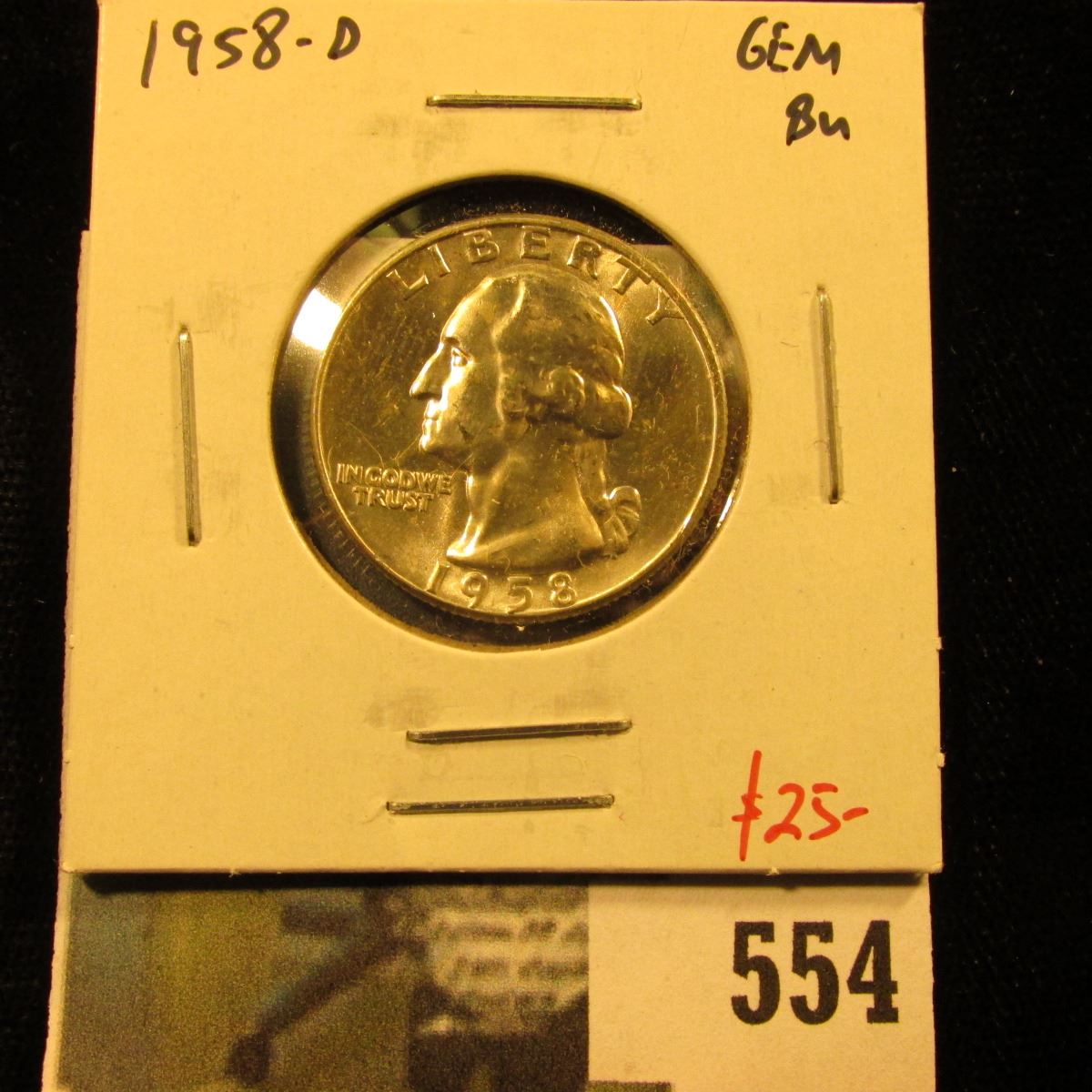 1958-D Washington Quarter, Gem BU, value $25