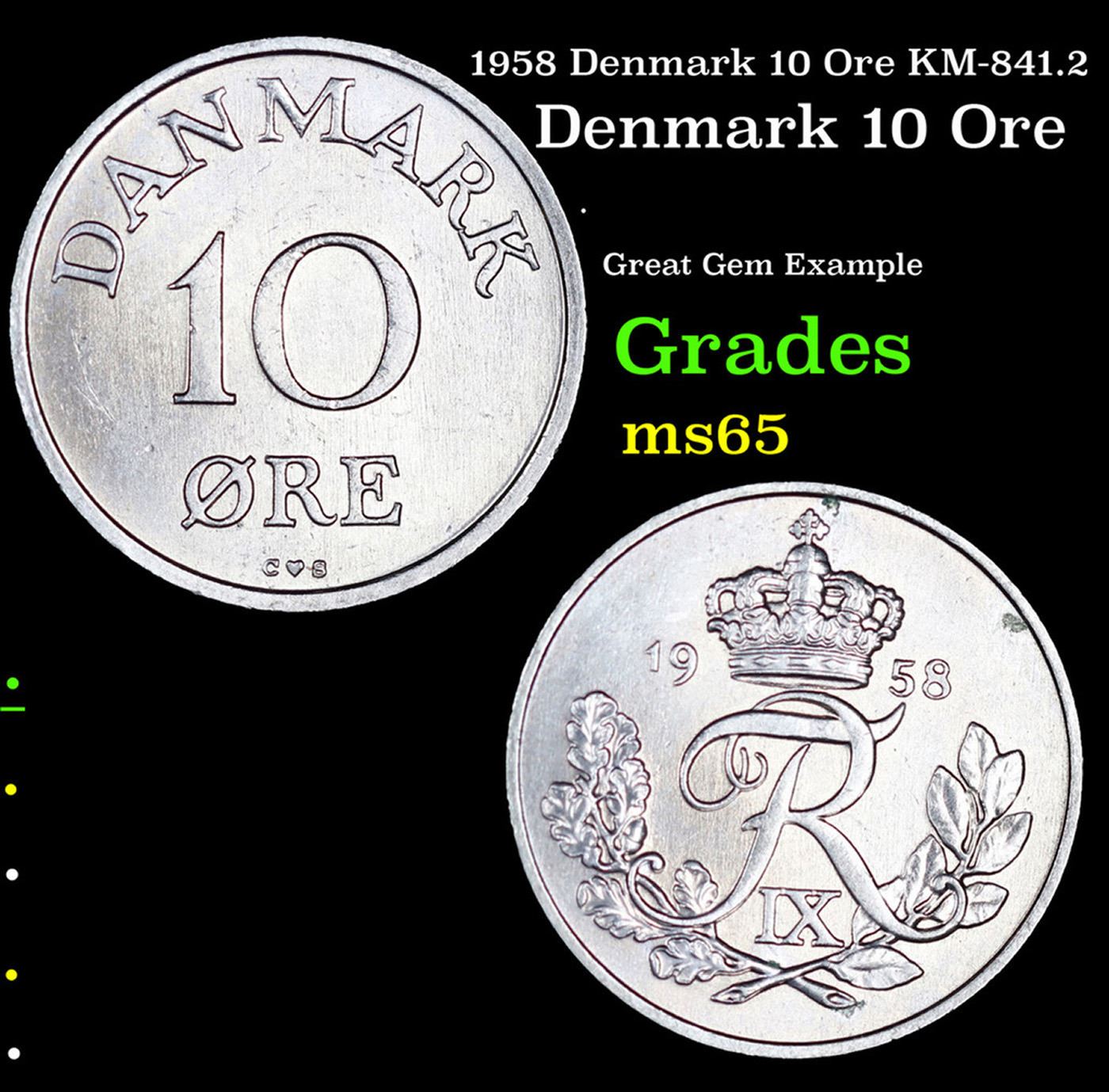 1958 Denmark 10 Ore KM-841.2 Grades GEM Unc.