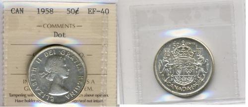 1958 Dot Canada Fifty Cents-ICCS EF40