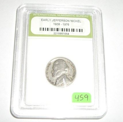 1958 EARLY JEFFERSON NICKEL CERTIFIED BY INB *INTERNATIONAL NUMISMATIC BUREAU* SERIAL # 2215951554!! COIN CAME OUT OF ESTATE SAFE!! ***Coin, Currency & All Items Listed in this auction - Grades, Conditions and Values are not Safe Deposit Coins LLC Responsibilty. Grades, Condition and Values are determined by Consigner(s) & Buyers ONLY