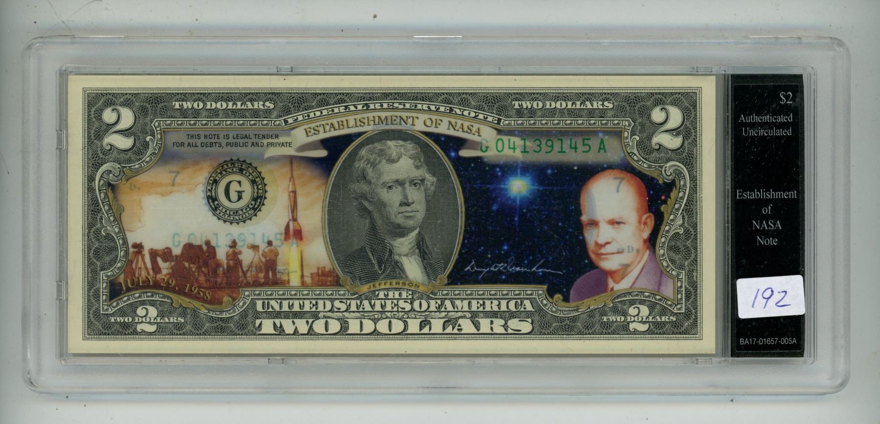 1958 Establishment of Nasa $2 Note In Hard Case.