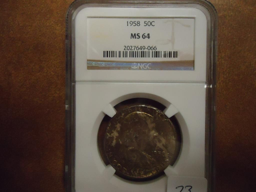 1958 FRANKLIN HALF DOLLAR NGC MS64 TONED