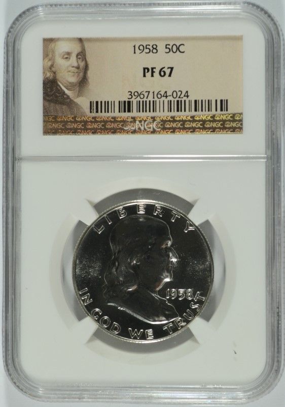 1958 FRANKLIN HALF DOLLAR, NGC PROOF-67 SUPERB!