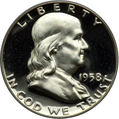 1958 Franklin Half Dollar. PCGS graded Proof 68 Deep Cameo. A fantastic superb white cameo gem. It just does not get better than this. Undoubtedly destined for a top quality Registry Set. Pop 16 none finer (PCGS # 96699) .