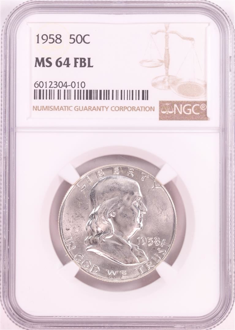 One 1958 Franklin Half Dollar Coin NGC MS64FBL. NGC Certified.