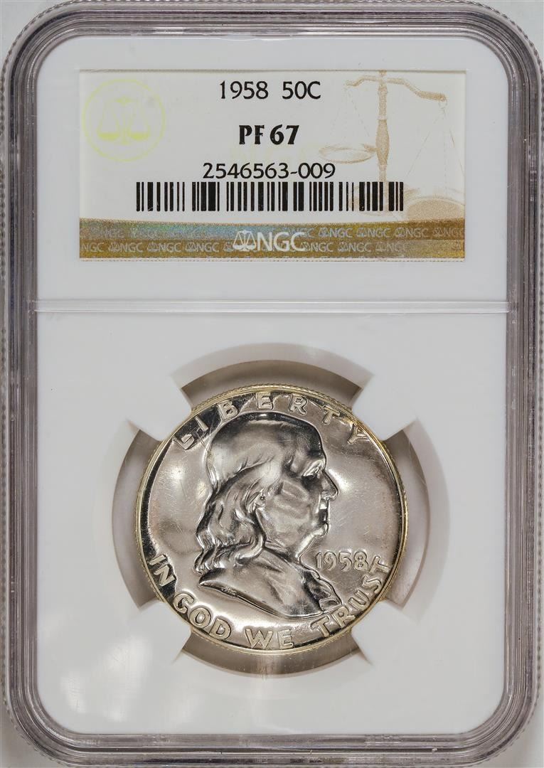 One 1958 Franklin Half Dollar Coin NGC PF67.
