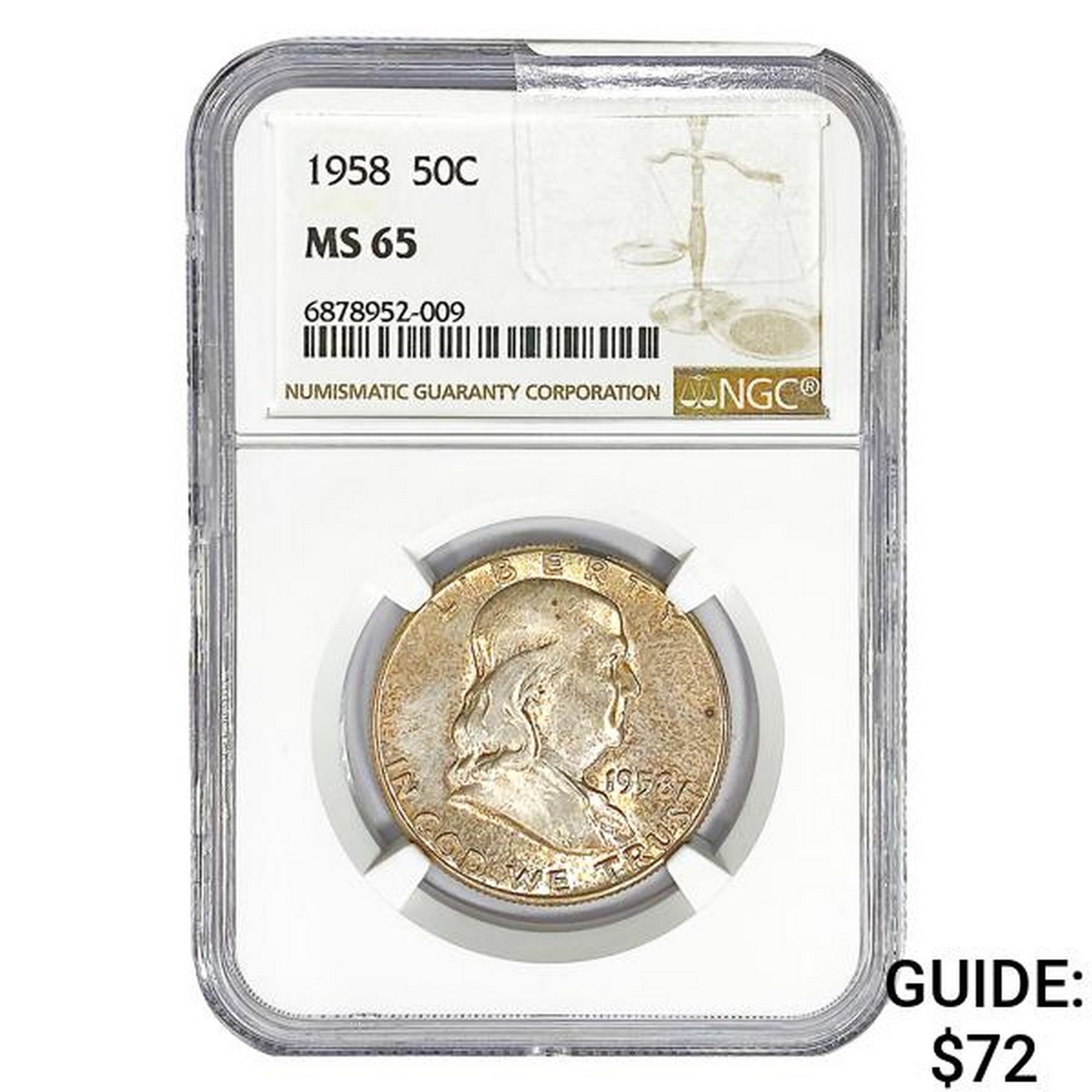 1958 Franklin Half Dollar NGC MS65