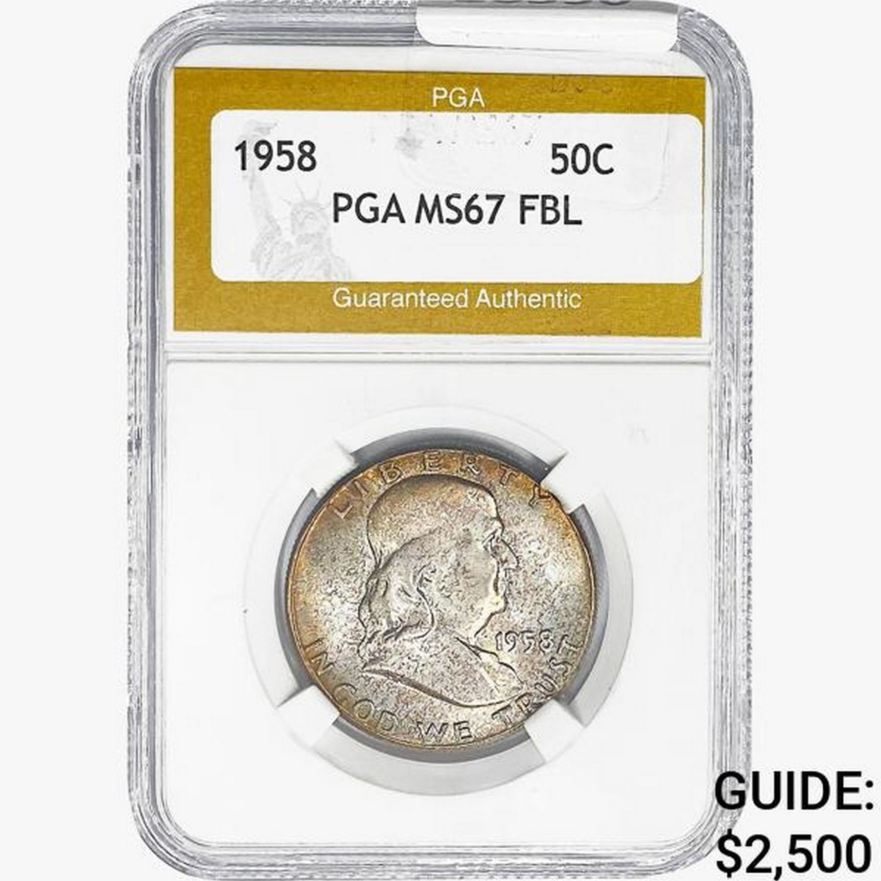 1958 Franklin Half Dollar PGA MS67 FBL