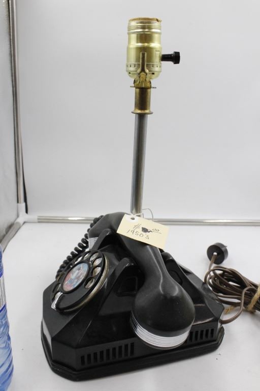 1950's Black Rotary Phone made into a Lamp