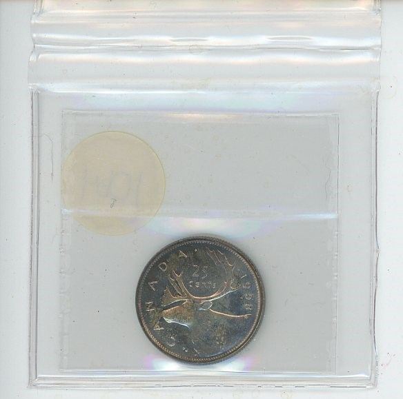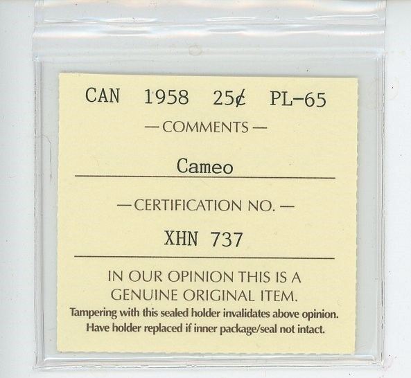 1958 ICCS GRADED CANADIAN TWENTY-FIVE CENT COIN - PL65
