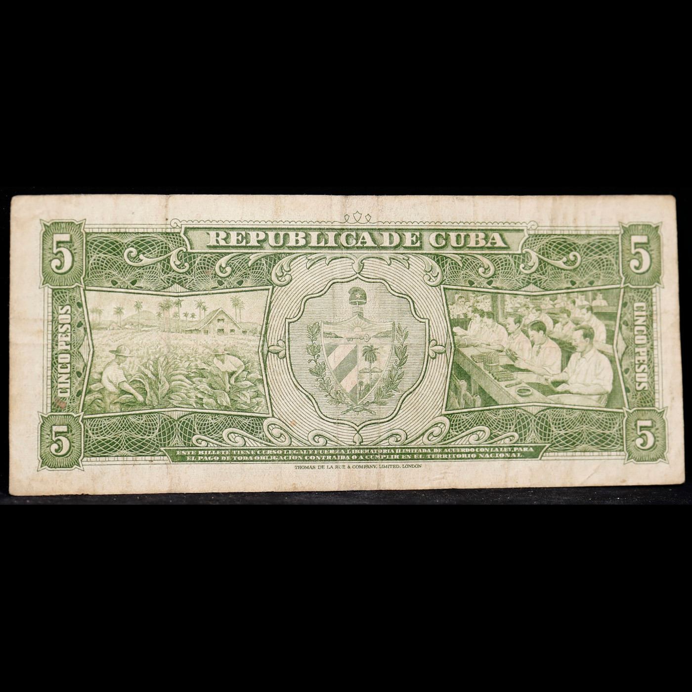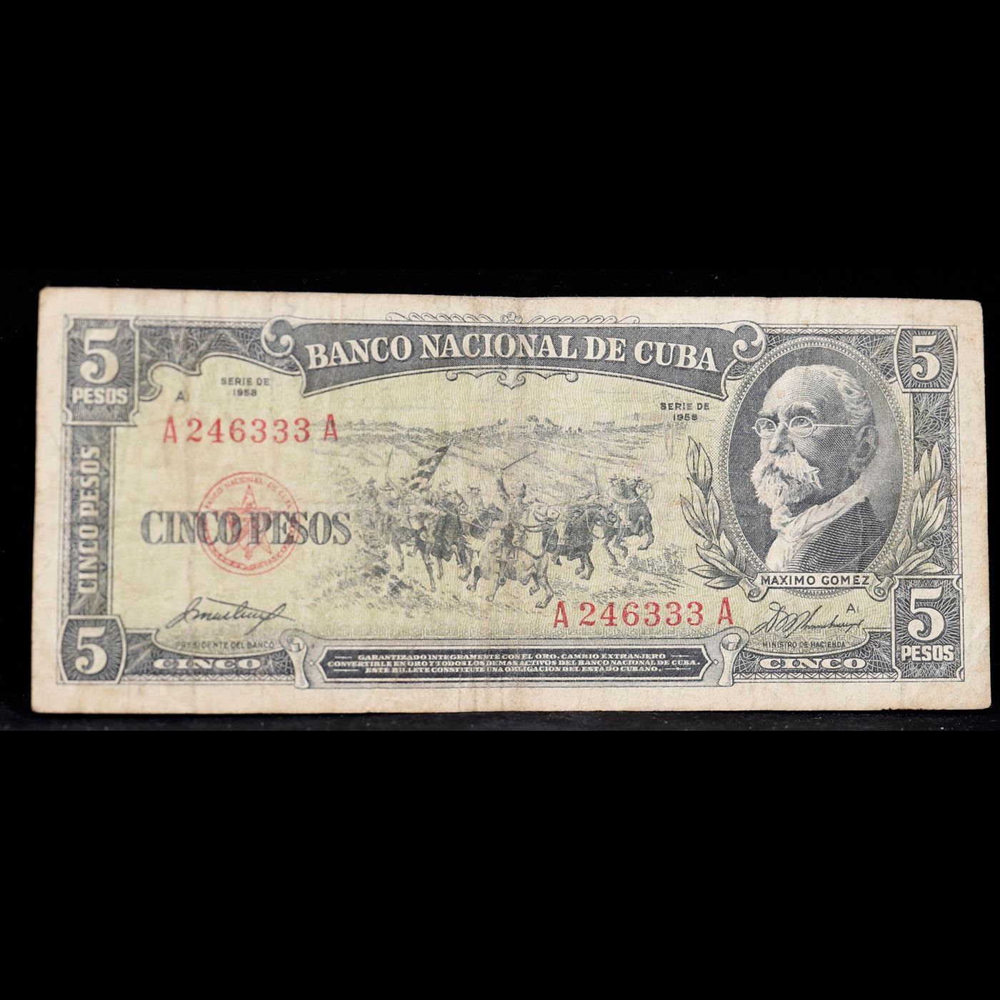 1958 National Bank of Cuba 5 Pesos Note Grades vf+.