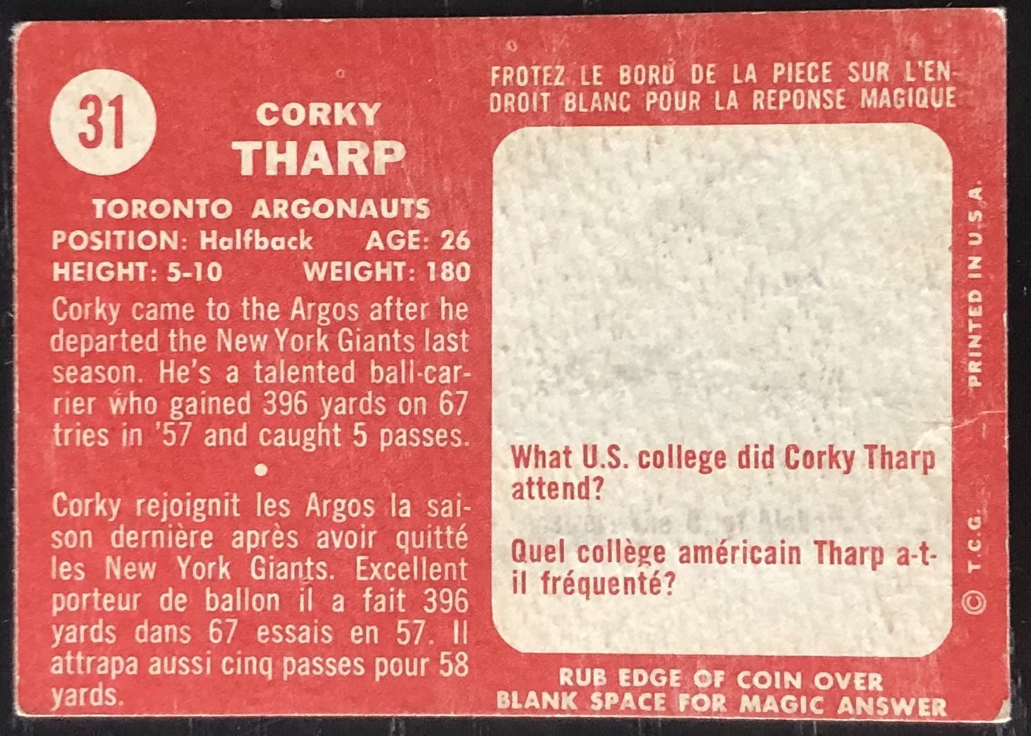 Card #31 vintage, CFL, OPC, football, hall of fame, rookie