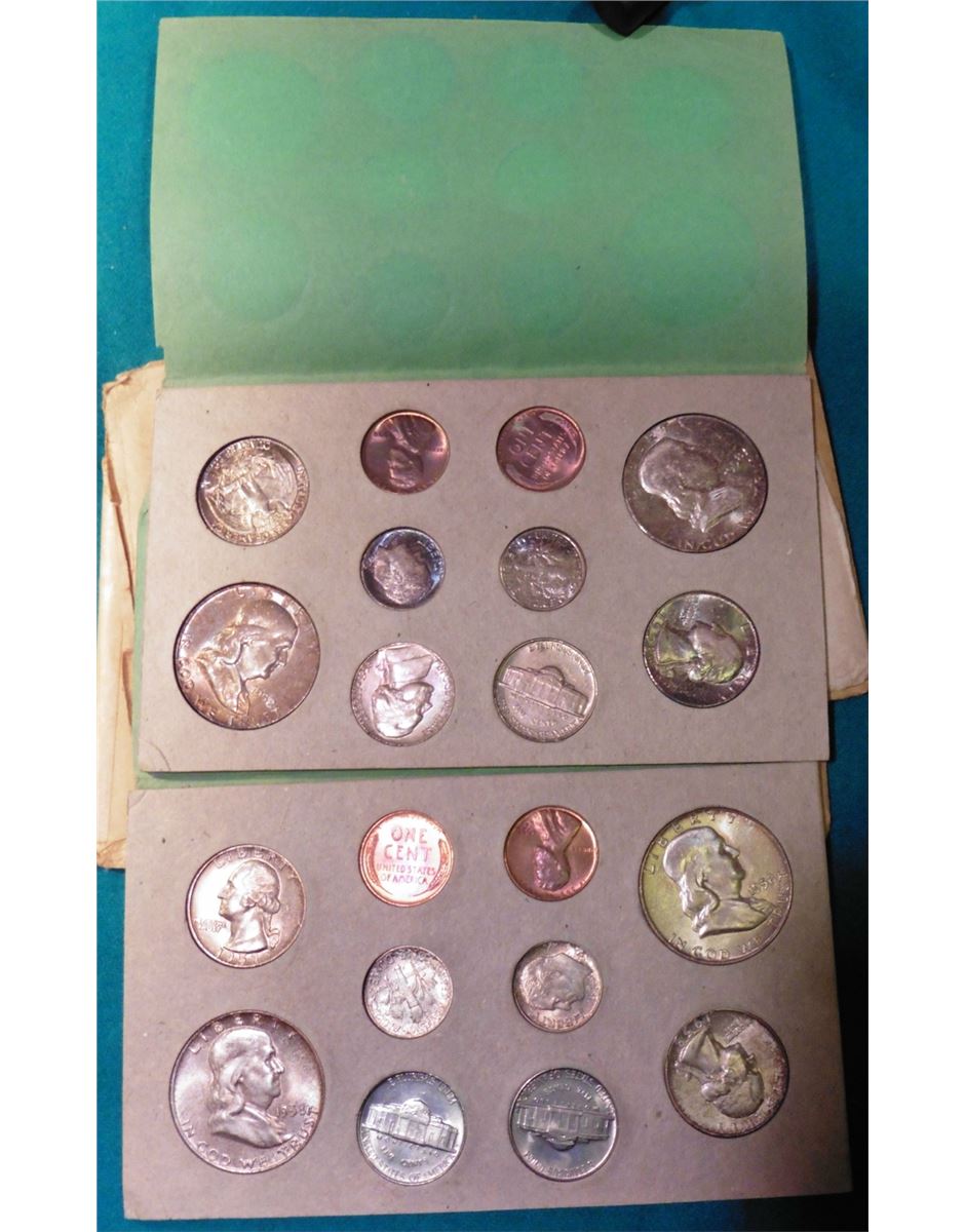 1958 Original U.S. Mint Set in original envelope and green cardboard holders. Superb toning. Only 50,314 of these sets were ever minted. $3.64 face value.