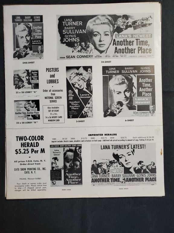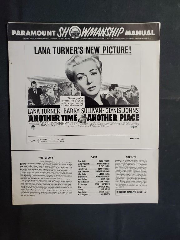 1958 Paramount "ANOTHER TIME, ANOTHER PLACE" SHOWMANSHIP MANUAL starring Lana Turner, Barry Sull