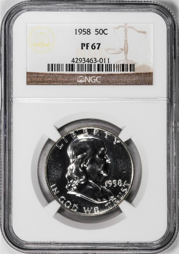 One 1958 Proof Franklin Half Dollar Coin NGC PF67. NGC Certified.